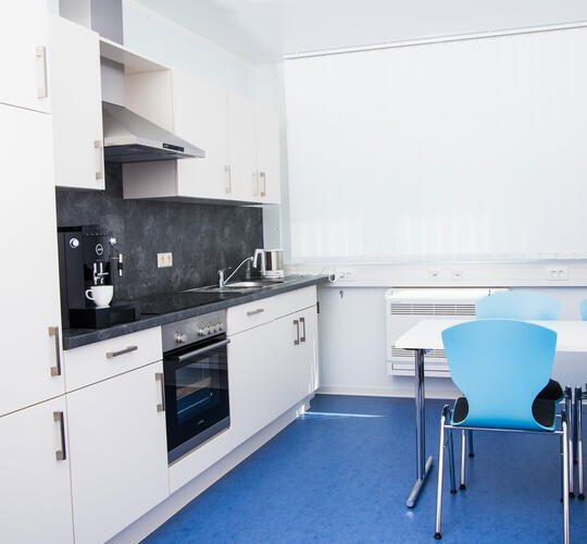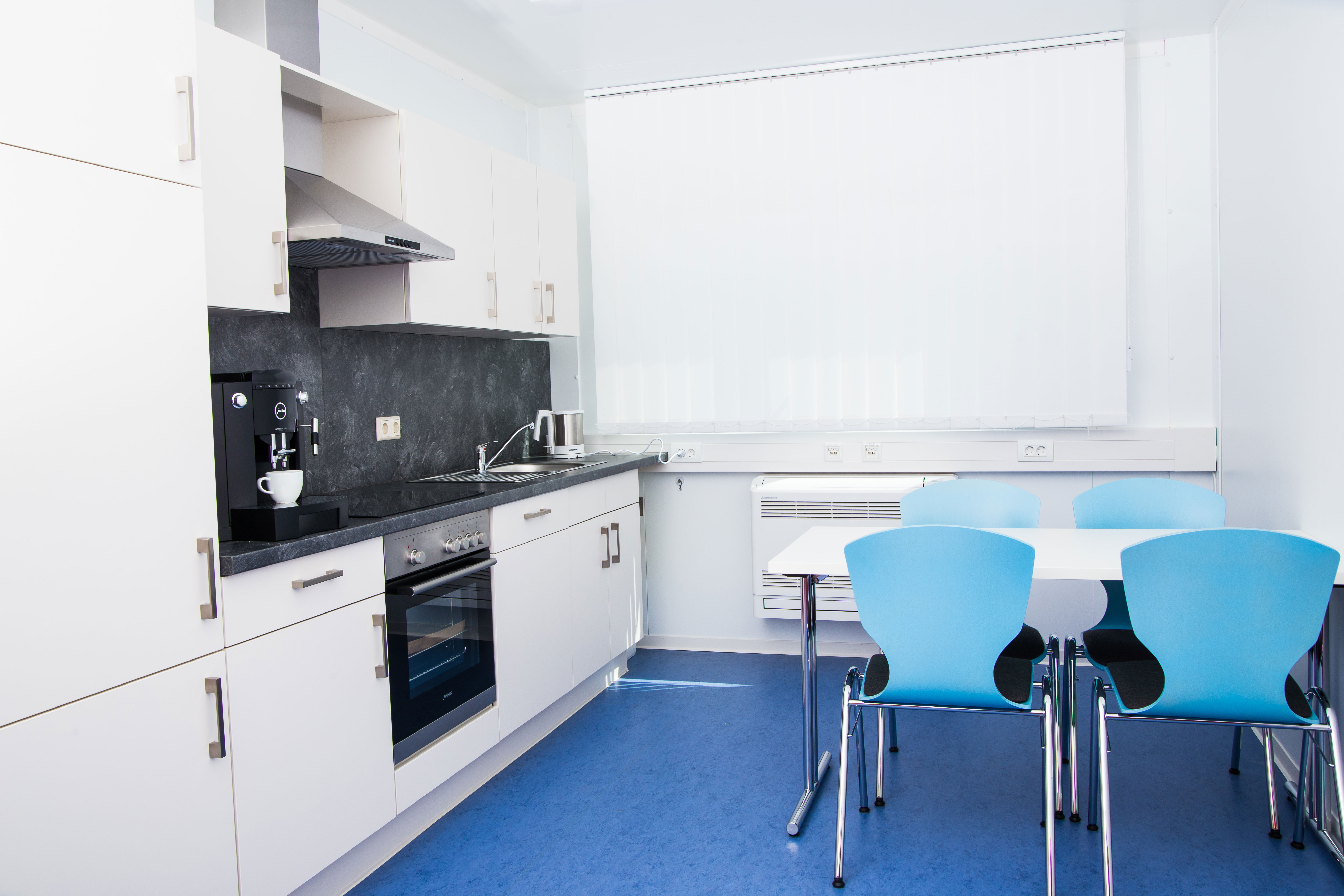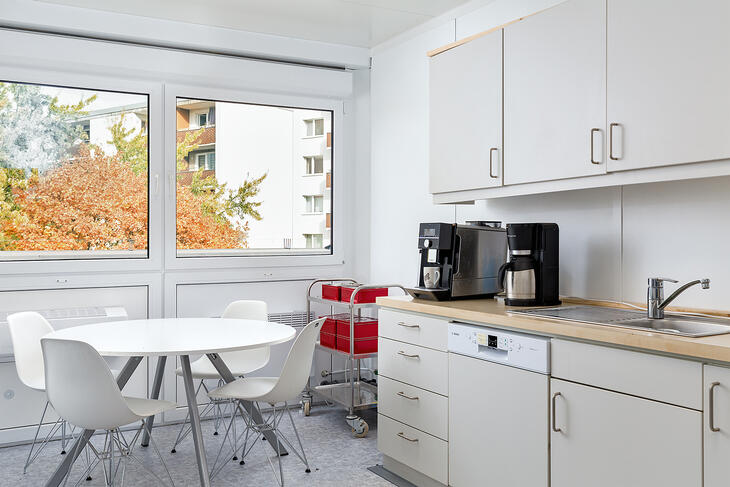 Når ELA Container sammensætter rumsystemer til banker og pengeinstitutter, kan der også indrettes et opholdsrum til personalet. Opholdsrummet kan udstyres med tekøkken og siddepladser og udgør et populært samlingssted for personalet.