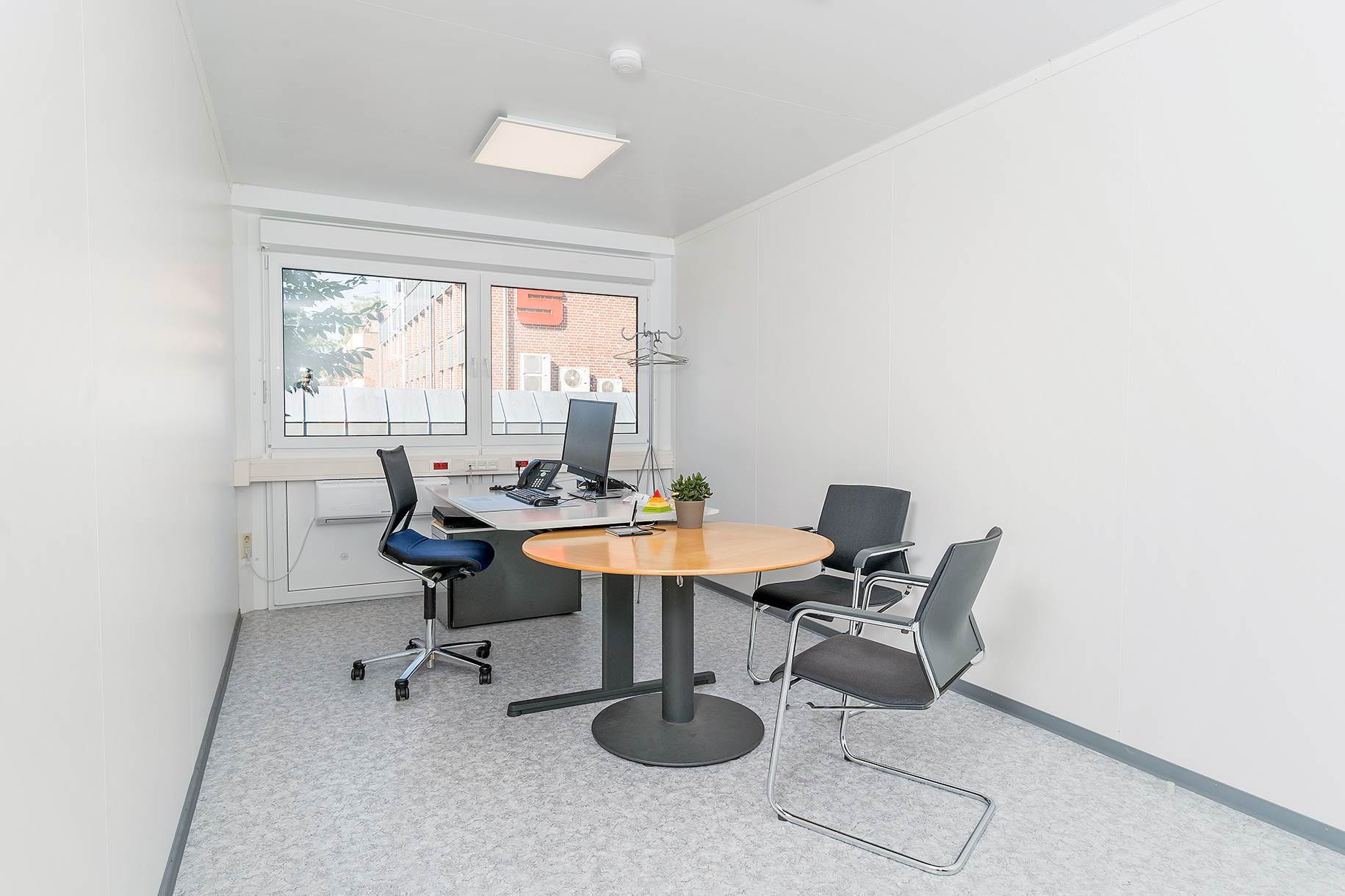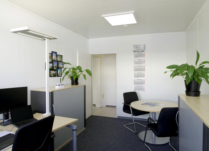 Økonomi drøftes bedst i et fortroligt miljø. Derfor er mødelokalerne i de mobile bankmoduler fra ELA Container designet, så både bankrådgiveren og kunden føler sig godt tilpas. Store vinduer, lyse vægge og gulve samt smagfuldt møblement beroliger, når der skal drøftes penge og økonomi.