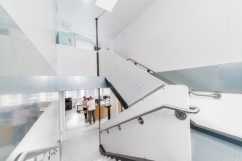 De enkelte lokaler i en rumløsning til banker kan nemt forbindes med et indvendigt gangsystem. Det sparer plads og gør det nemt og hurtigt at bevæge sig mellem kontorerne, og også mellem etagerne. ELAs kontormoduler kan leveres med komplet udstyr, hvis det ønskes. Udvalget af møbler omfatter skriveborde, kontorstole, arkivskabe af forskellig størrelse, kommunikationsudstyr og whiteboards.