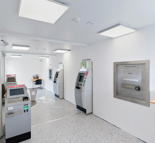 Rumløsning indrettet med hæveautomater og bankboks