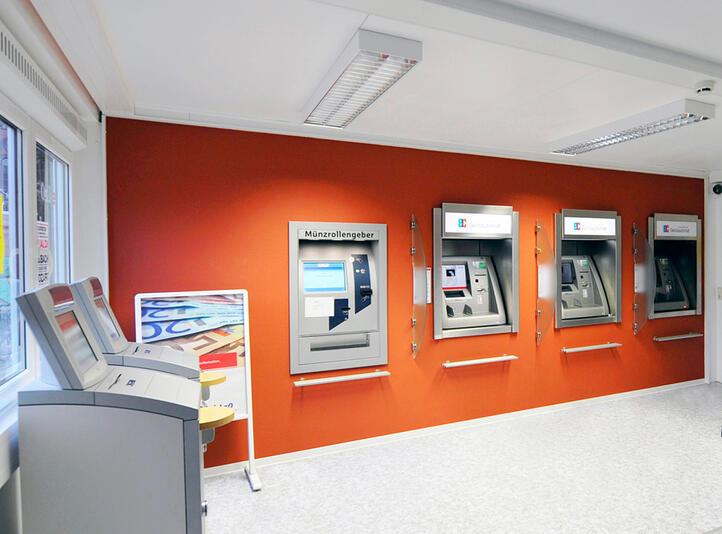 Med en separat forhal til hæveautomater, print af kontoudtog og bankboks udgør ELAs rumløsninger til banker og pengeinstitutter til et sikkert sted, separat fra hovedmodulerne bankens mobile rumløsning.